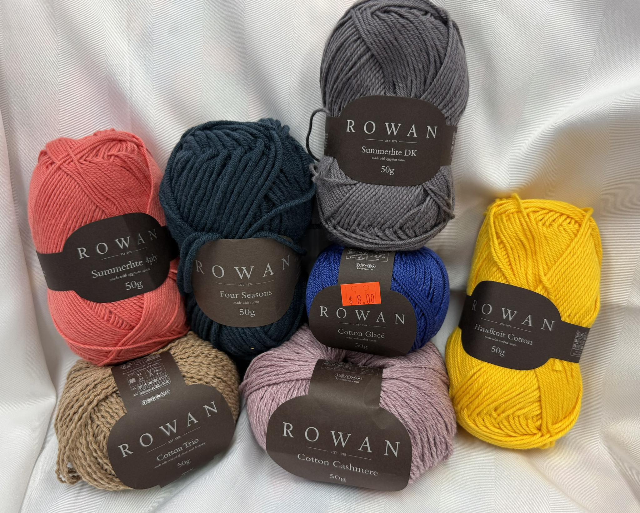 ALL Rowan Cottons & Cotton Blends are now 20% off the regular price. Rowan Cotton Glace is 40% off, now $8.00 per ball!