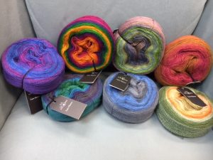 One cake of Lace Flower contains 1200 metres (150g) of soft merino wool. Check out the SkacelĀ web site for free patterns for this lovely new Schoppel yarn. I just love the colour changes!