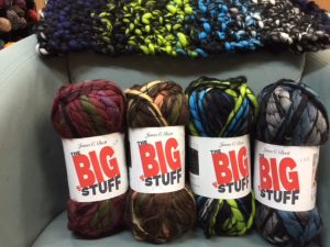 Big Stuff 2018-10-162018-10-16 Gisele Yarns Another new yarn from James C Brett… the Big Stuff. With 4 balls you can knit a bed runner and with 6 you can knit a blanket for your sofa using 20mm needles… both patterns are on the ball band!