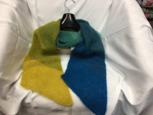 Ombré Kid Silk Haze 2020-03-192020-03-19 Gisele Yarns Rowan has put together 3 different sets of Kid Silk Haze colours that gives different ombré effects. The scarf is knit on the bias and very easy to knit.
